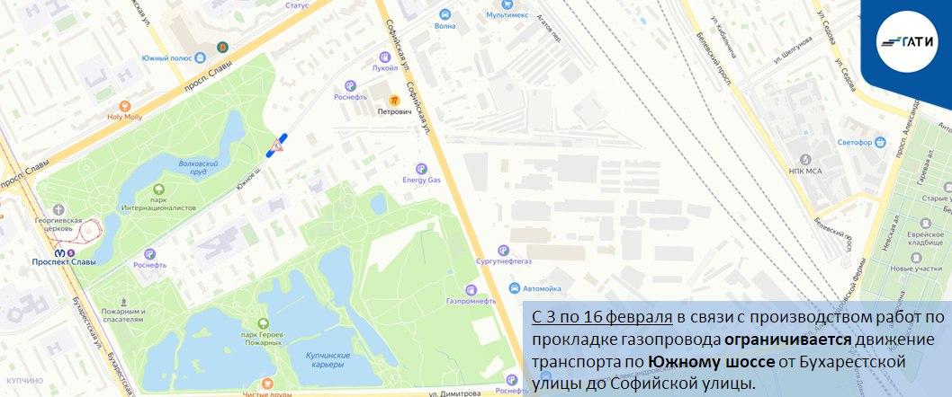 С 3 по 16 февраля на Южном шоссе от Бухарестской до Софийской улицы движение будет ограничено для прокладки газопровода.