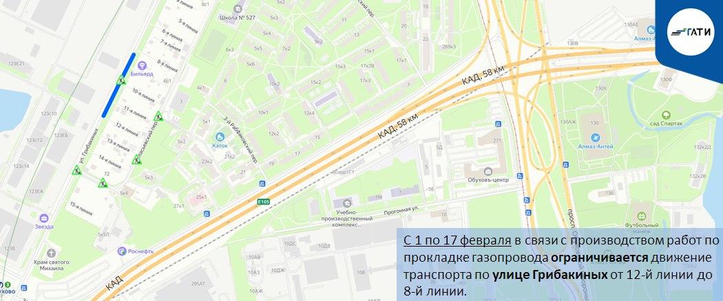 Кроме того, с 1 по 17 февраля для прокладки газопровода ограничат проезд по улице Грибакиных между 12-й и 8-й линиями.