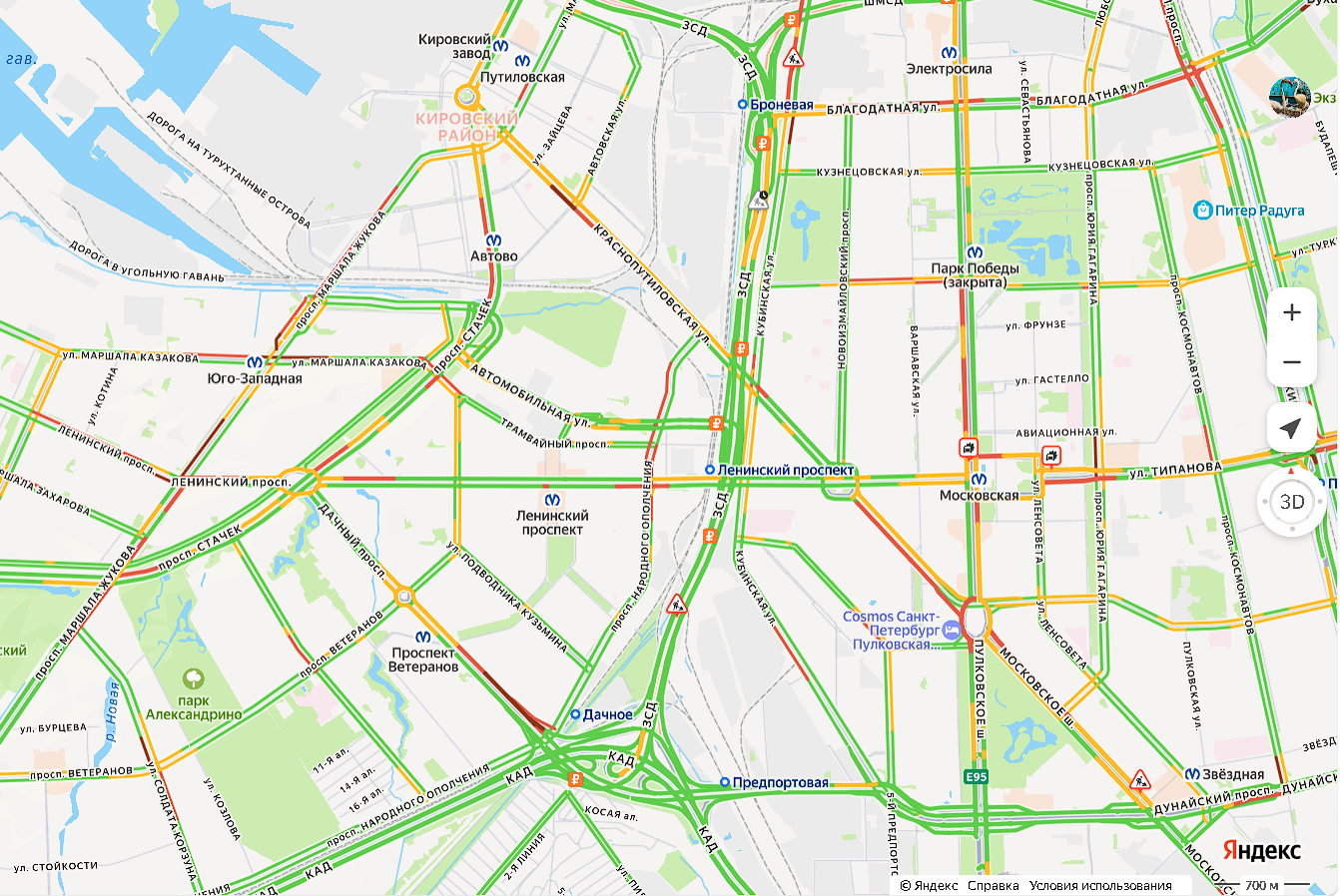 Кроме того, с 23:00 23 апреля до 06:00 24 апреля из-за дорожных работ будет полностью перекрыт съезд с Витебского проспекта на Витебскую развязку (ШМСД) в сторону ЗСД.