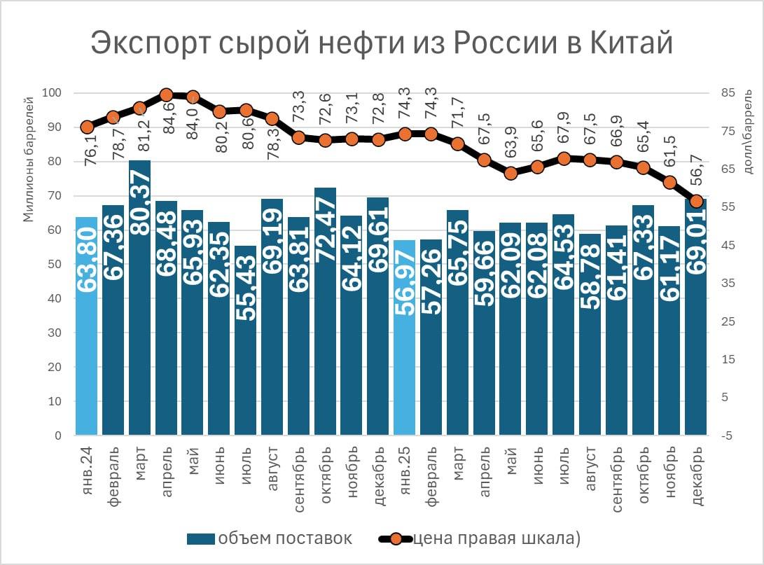 Даже до 2022 года колебания мировых цен на нефть не «пробивали» этот налогово-регуляторный каркас. Теперь цена на российскую нефть формируется не на бирже, а в ходе закрытых договорённостей с партнёрами из дружественных стран. О реальной стоимости можно судить лишь по таможенной статистике, которую раскрывают немногие государства. Например, по свежим данным, в декабре Россия продавала сырую нефть в Китай по средней цене 56,7 доллара за баррель.