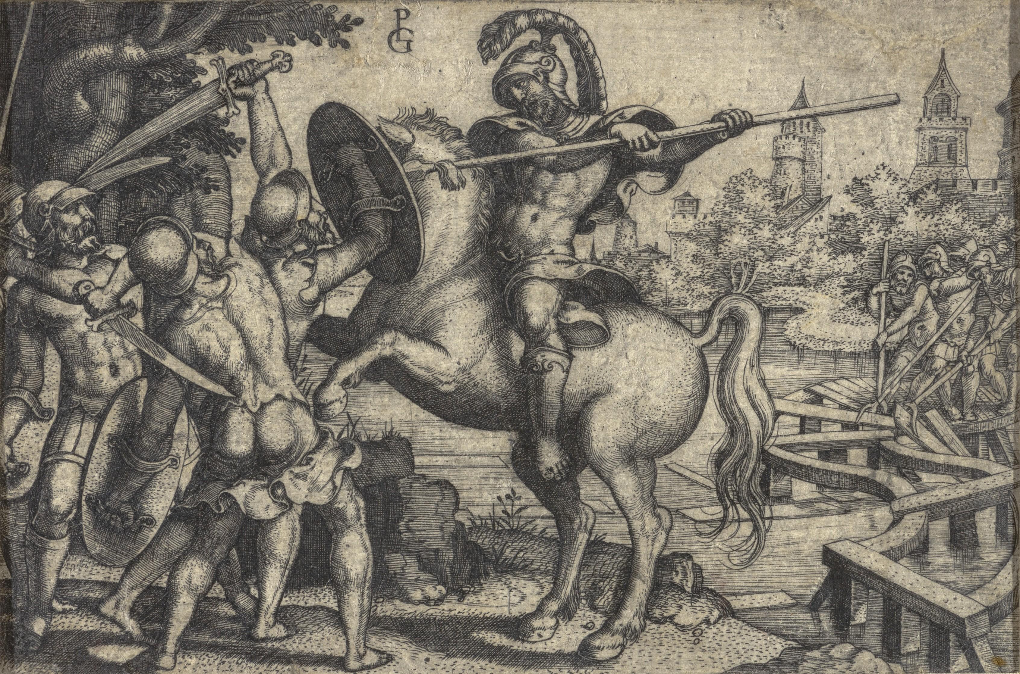 Гравюра Георга Пенца «Гораций Коклес защищает вход на мост против войск Порсенны».