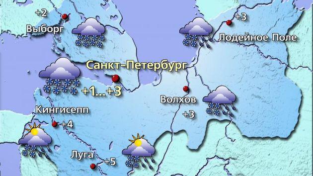 По данным метеорологического центра «ФОБОС», погоду в Петербурге определяет юго-западная периферия циклонического вихря, вышедшего в районы Карелии. Ожидается облачность, а ближе к вечеру — осадки в виде снега и мокрого снега. Местами вероятна гололедица.