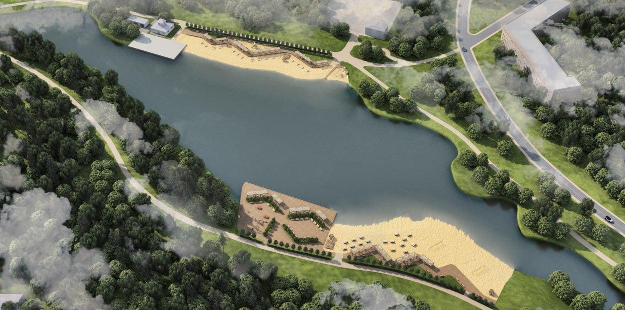 На западном берегу пруда появятся пляжный душ, раздевалки, оборудование для воркаута, ориентированное на упражнения с собственным весом, а также теннисный стол. Здесь же обустроят детскую площадку с зоной отдыха для взрослых, которую отгорожут живой изгородью.