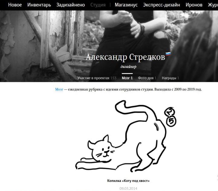 Александр Стрелков также значится автором идеи из раздела «Мозг», который обновлялся в 2009–2019 годах. Речь идёт о копилке «Коту под хвост».
