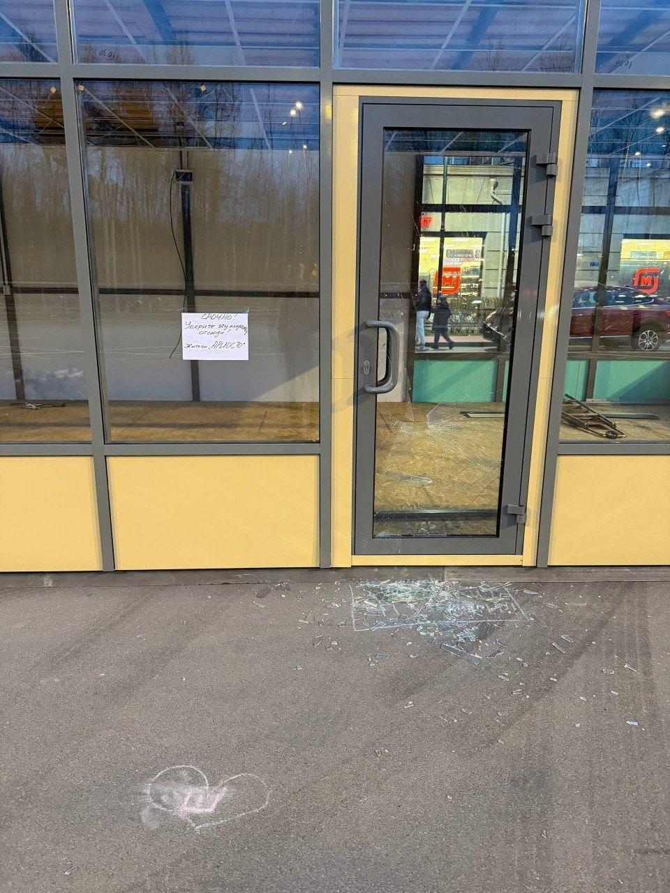 Перед демонтажом неизвестные повредили дверь торгового объекта.