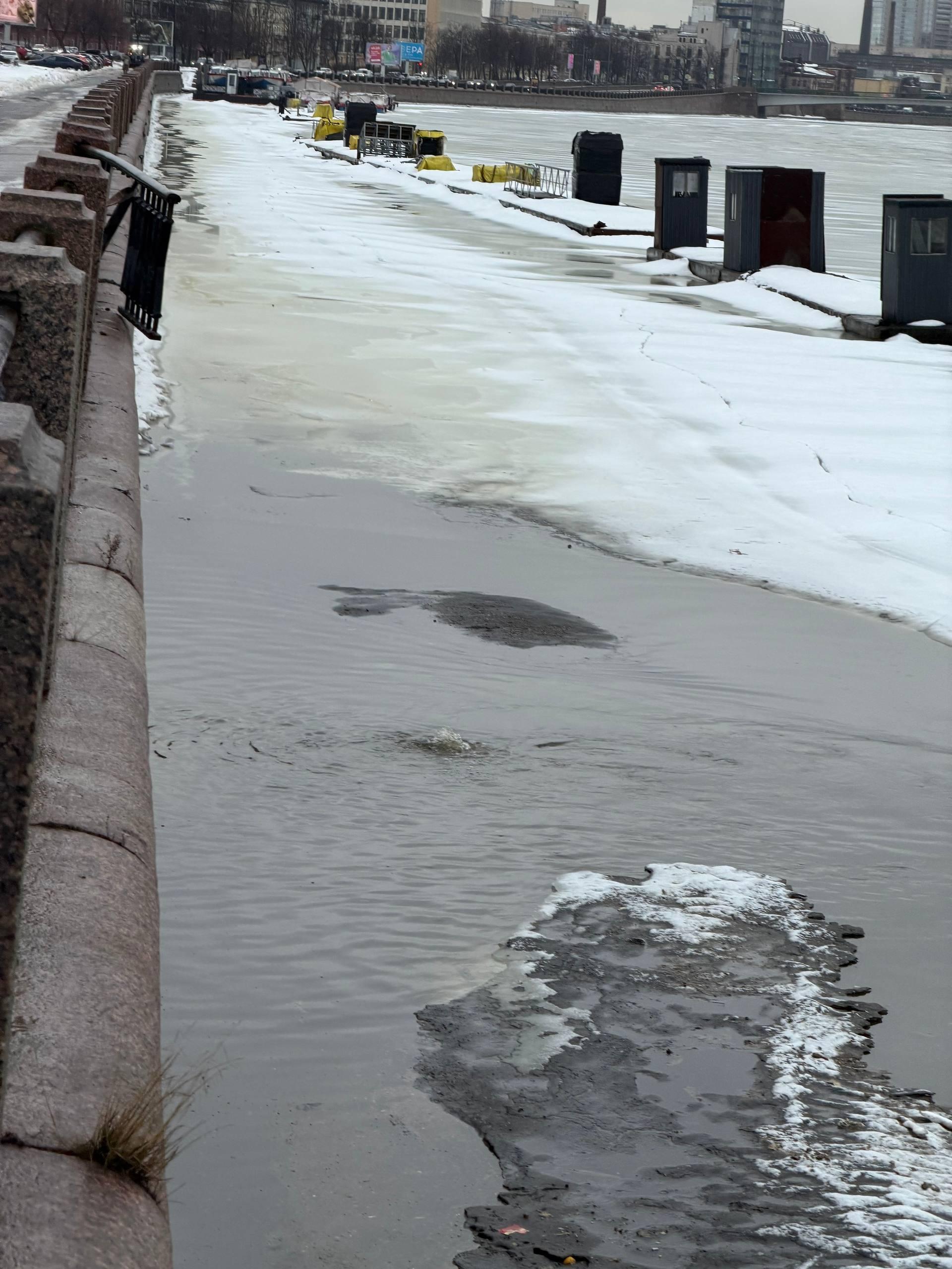 Днём 2 марта на Выборгской набережной в Санкт-Петербурге очевидцы заметили два необычных явления: сломанное ограждение и бурлящую воду.