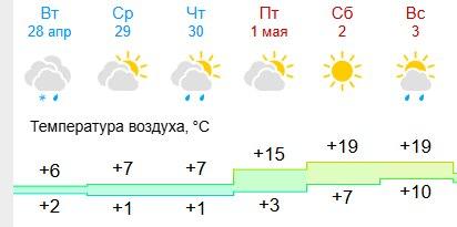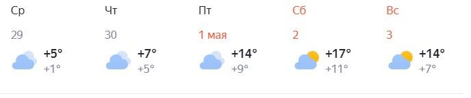Циклон будет постепенно уходить, забрав с собой ветер. На смену ему с запада придёт антициклон с западным ветром. Как пояснил синоптик, антициклон принесёт ясную погоду: облака рассеются, выглянет солнце. Температура воздуха к первым майским выходным поднимется до +15…+20 градусов. Однако в воскресенье, 3 мая, возможно похолодание до +12 градусов и небольшой дождь.
