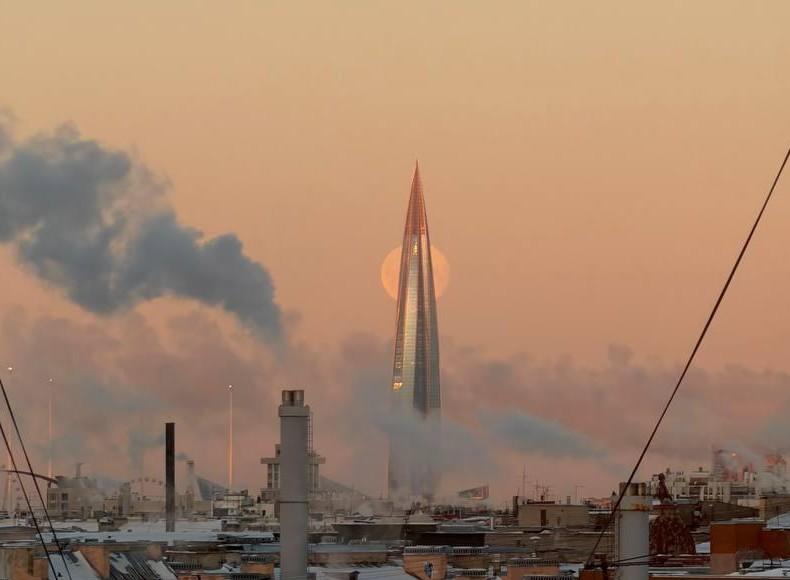 Барический гребень обеспечил ясное небо над Петербургом утром 3 февраля. Благодаря этому горожане смогли увидеть не только восход солнца, но и луну, которая проплывала над городом.
