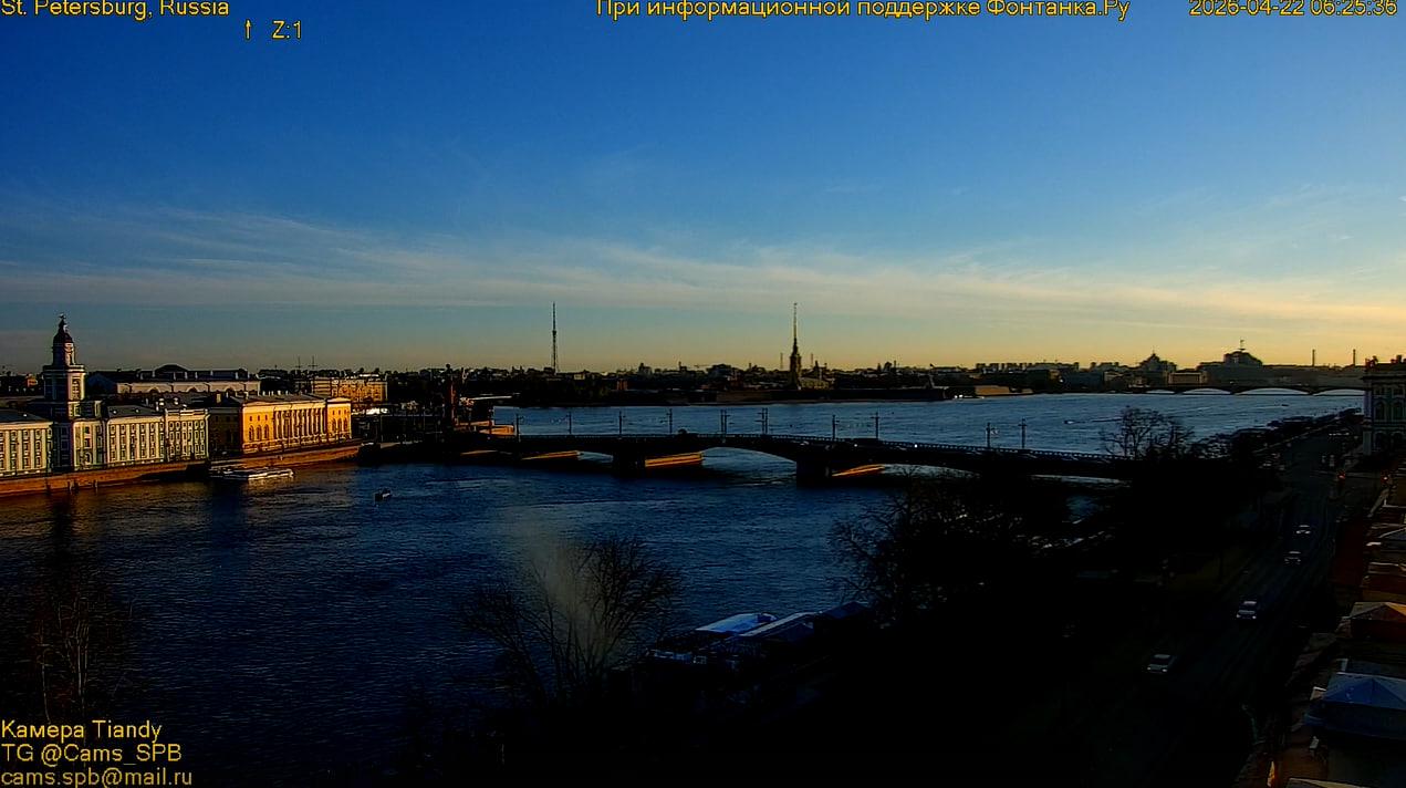 Утро 22 апреля в Санкт-Петербурге солнечное, температура воздуха составляет около +5,7 градуса.