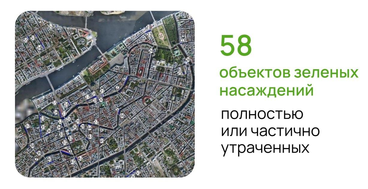 Комитет по природопользованию Санкт-Петербурга предварительно определил 58 участков в историческом центре города, где планируется восстановить утраченные зелёные насаждения.