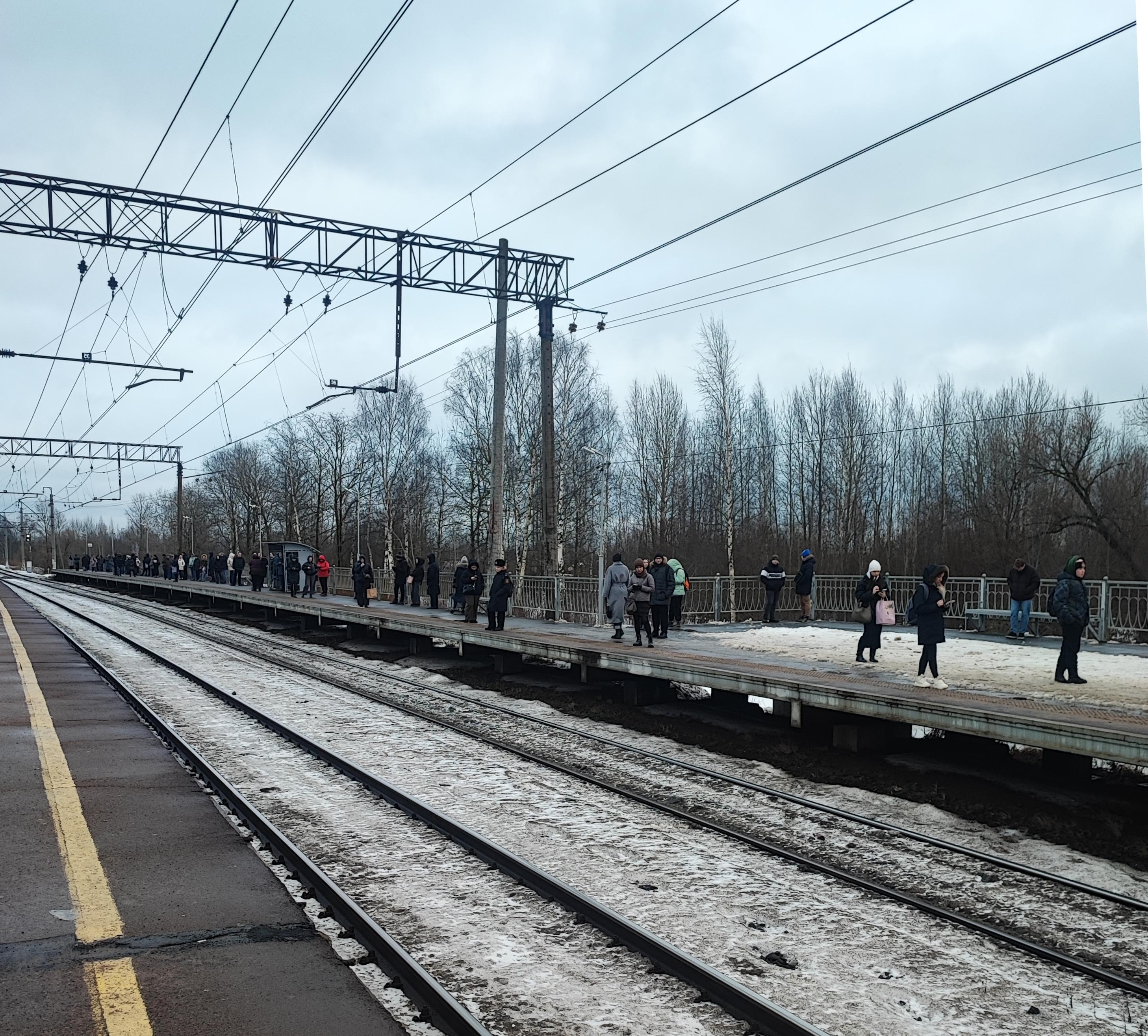 На балтийском направлении опоздания достигали 40 минут. Около 8:30 со станции Сосновая Поляна сообщали о скоплениях людей на платформе. В это же время на станции Пудость в Гатчинском районе ожидание поезда в Петербург растянулось на час.