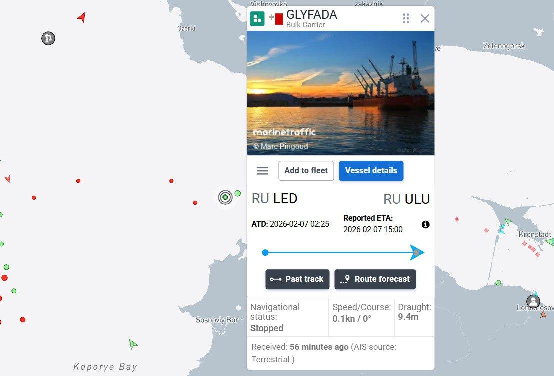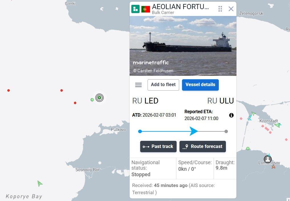 В инциденте участвовали балкеры Aeolian Fortune под флагом Португалии и Glyfada под флагом Мальты. Согласно данным мониторингового портала MarineTraffic, оба судна ночью вышли из порта Санкт-Петербург и направлялись в Усть-Лугу.