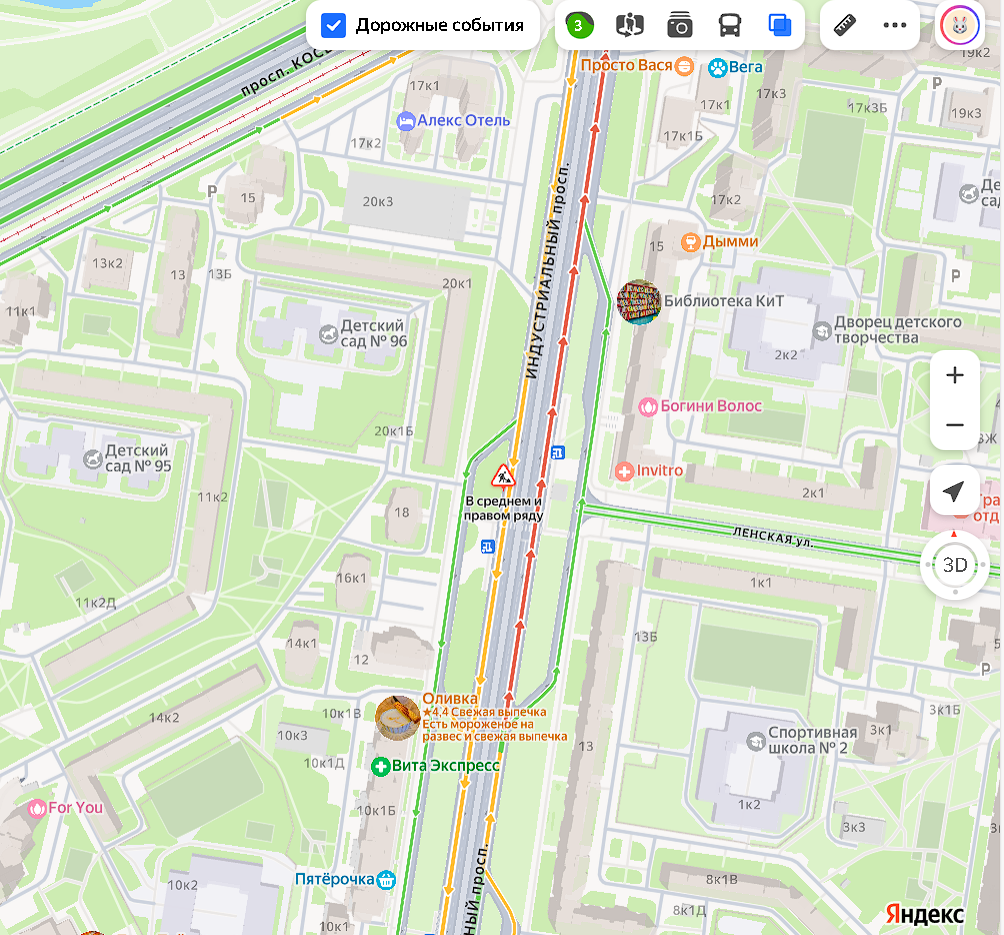Движение транспорта на данном участке слегка затруднено, согласно данным сервиса «Яндекс.Пробки».