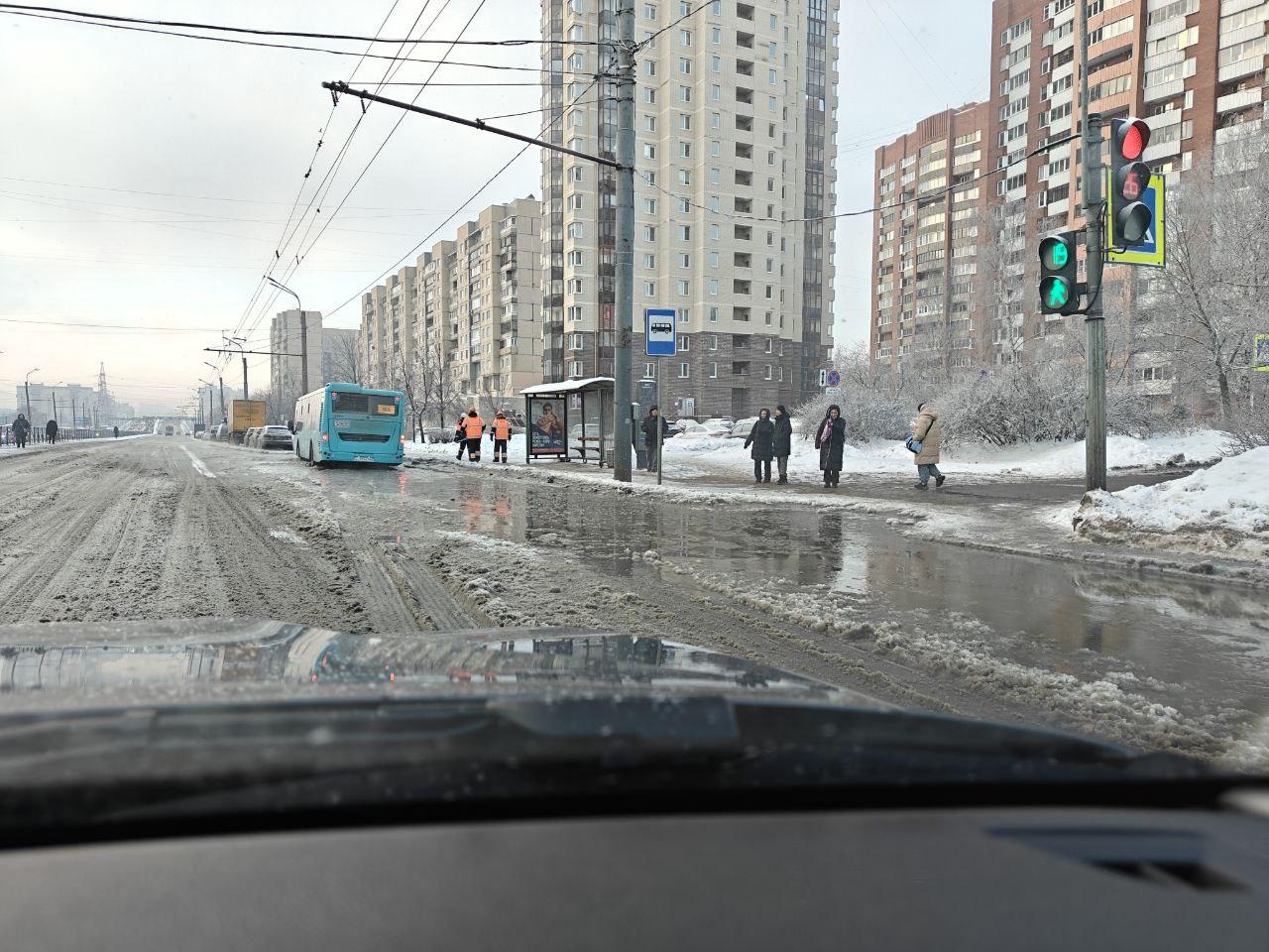 Индустриальный проспект в Петербурге затопило водой