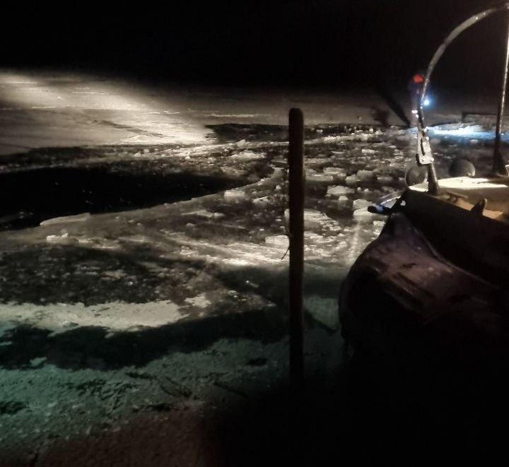 На расстоянии около 900 метров от берега машина, проезжая трещину, провалилась под лед. Двоим пассажирам удалось спастись, а водитель и одна из женщин погибли.