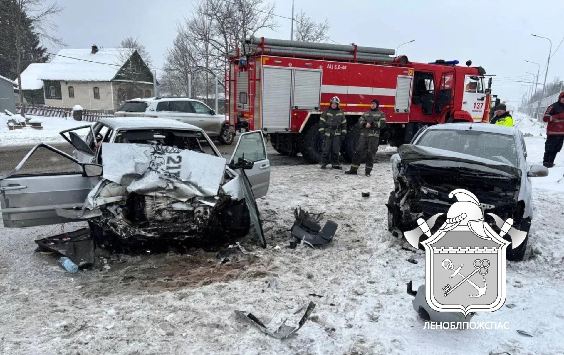 ГКУ «Леноблпожспас» обнародовало видеоматериалы с места дорожного происшествия, зафиксированного 23 февраля в Лужском районе Ленинградской области. В деревне Большая Ящера на Киевском шоссе произошло лобовое столкновение между автомобилями ВАЗ-2114 и Hyundai Getz.