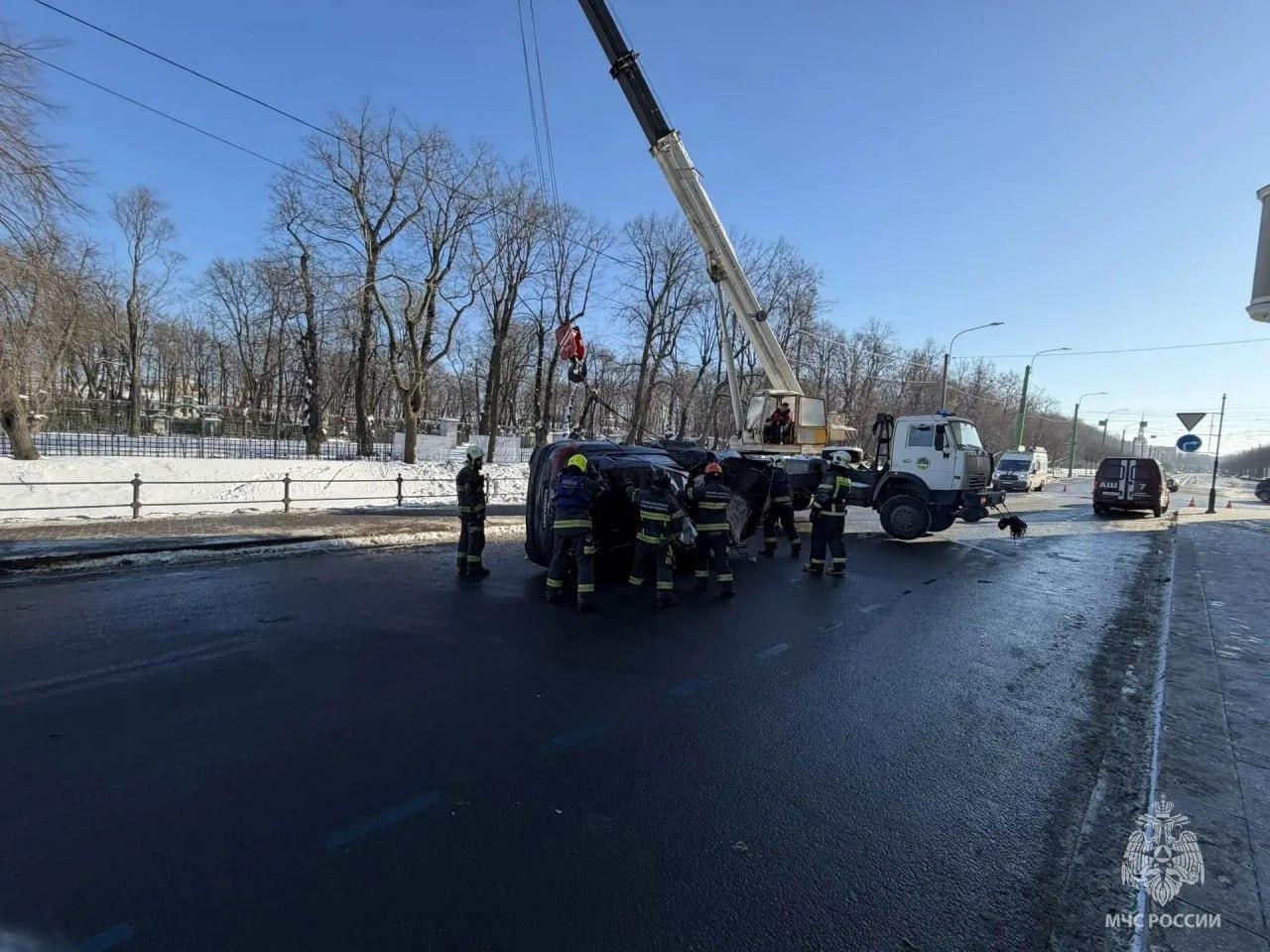 15 февраля пресс-служба Главного управления МЧС по Санкт-Петербургу распространила фотографии и видео с места работ по эвакуации автомобиля.