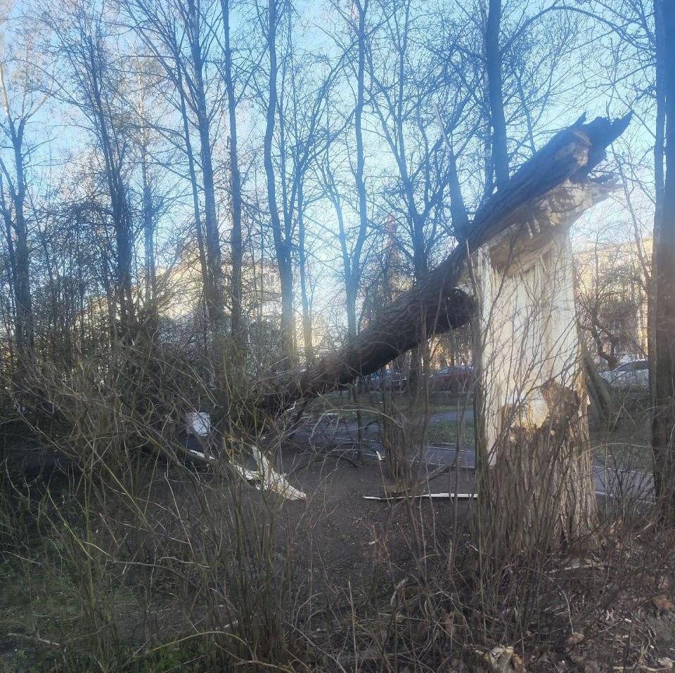 Сильный ветер 23 апреля вызвал многочисленные повреждения в Санкт-Петербурге. Очевидцы публикуют фотографии и видео последствий в интернете.