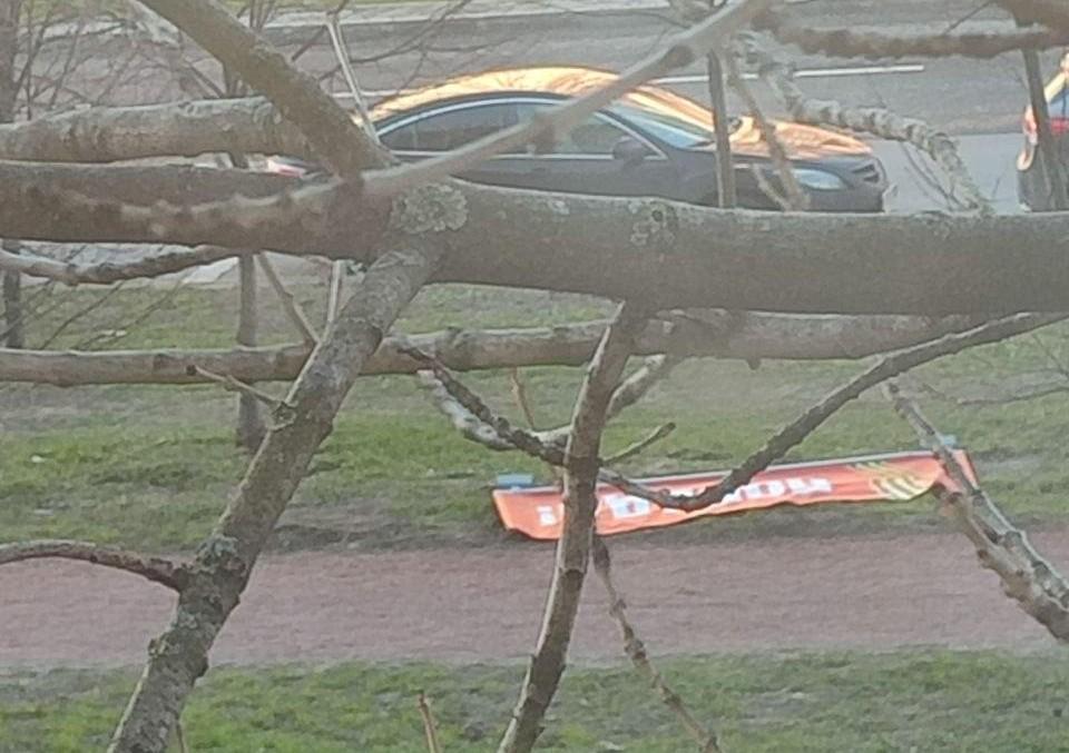 - На улице Кораблестроителей, 46, корпус 1, упала опора с праздничным баннером.