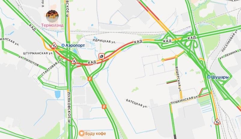 К 10 часам утра пробка на внешней стороне КАД растянулась на три километра — от Пулковского до Московского шоссе. В обратном направлении затор был немногим меньше. К полудню обстановка на участке оставалась сложной.