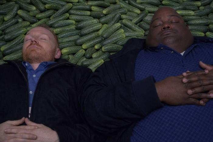 - Кадр из сериала «Во все тяжкие», где герои лежат на деньгах, переделали, заменив купюры огурцами.
