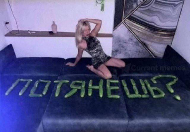 - Известное фото с надписью «Потянешь?» также адаптировали, поместив на него огурцы вместо денег.