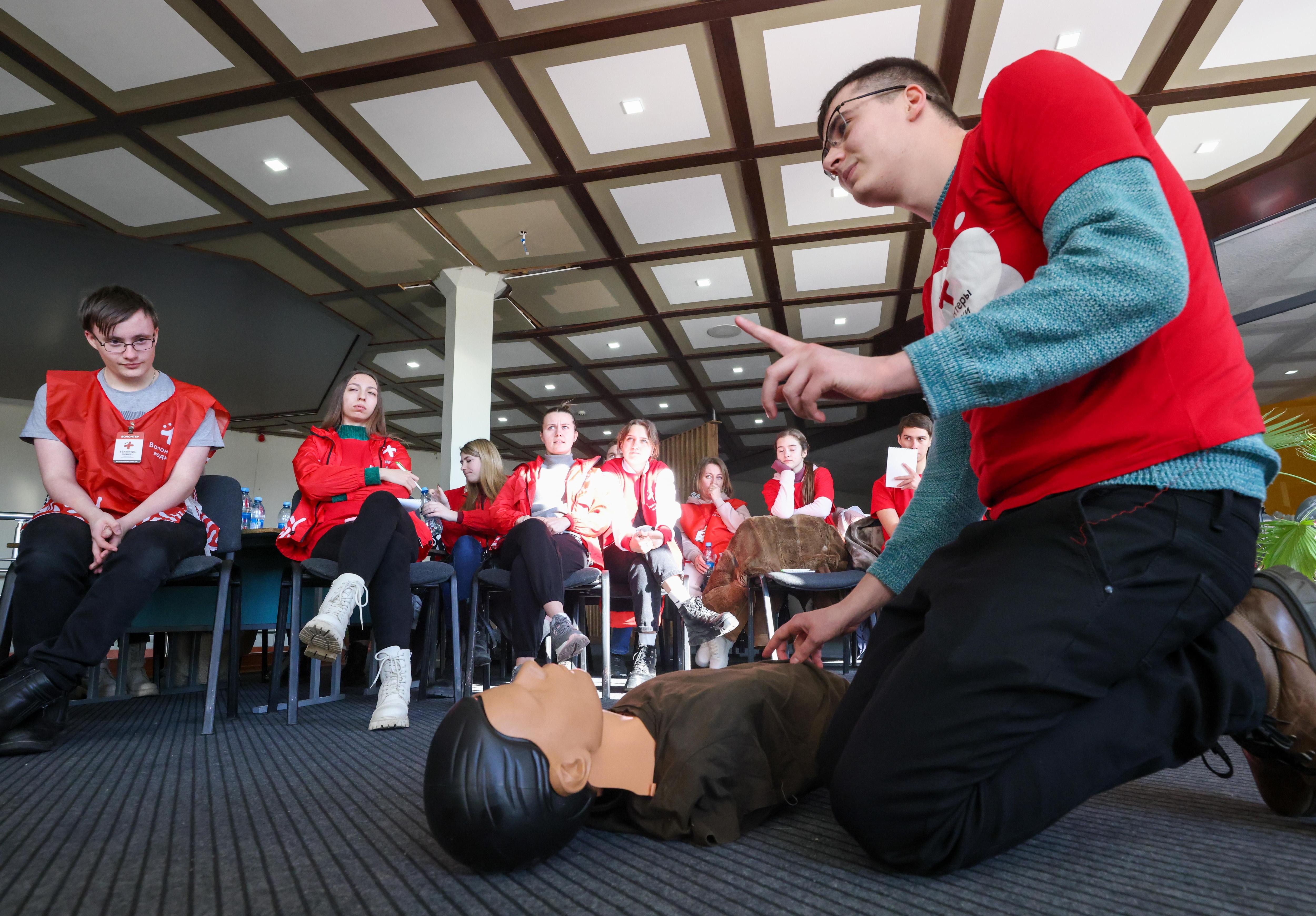- Проведению сердечно-лёгочной реанимации (СЛР), включая компрессию грудной клетки, искусственное дыхание и безопасное применение автоматического наружного дефибриллятора.