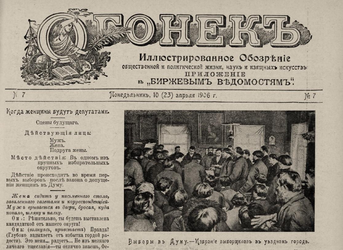 Фрагмент первой полосы журнала «Огонек» (1906, №7)
