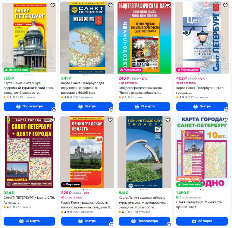Складные карты Санкт-Петербурга можно найти на маркетплейсах за несколько сотен рублей, но их необходимость при наличии цифровых аналогов вызывает вопросы.